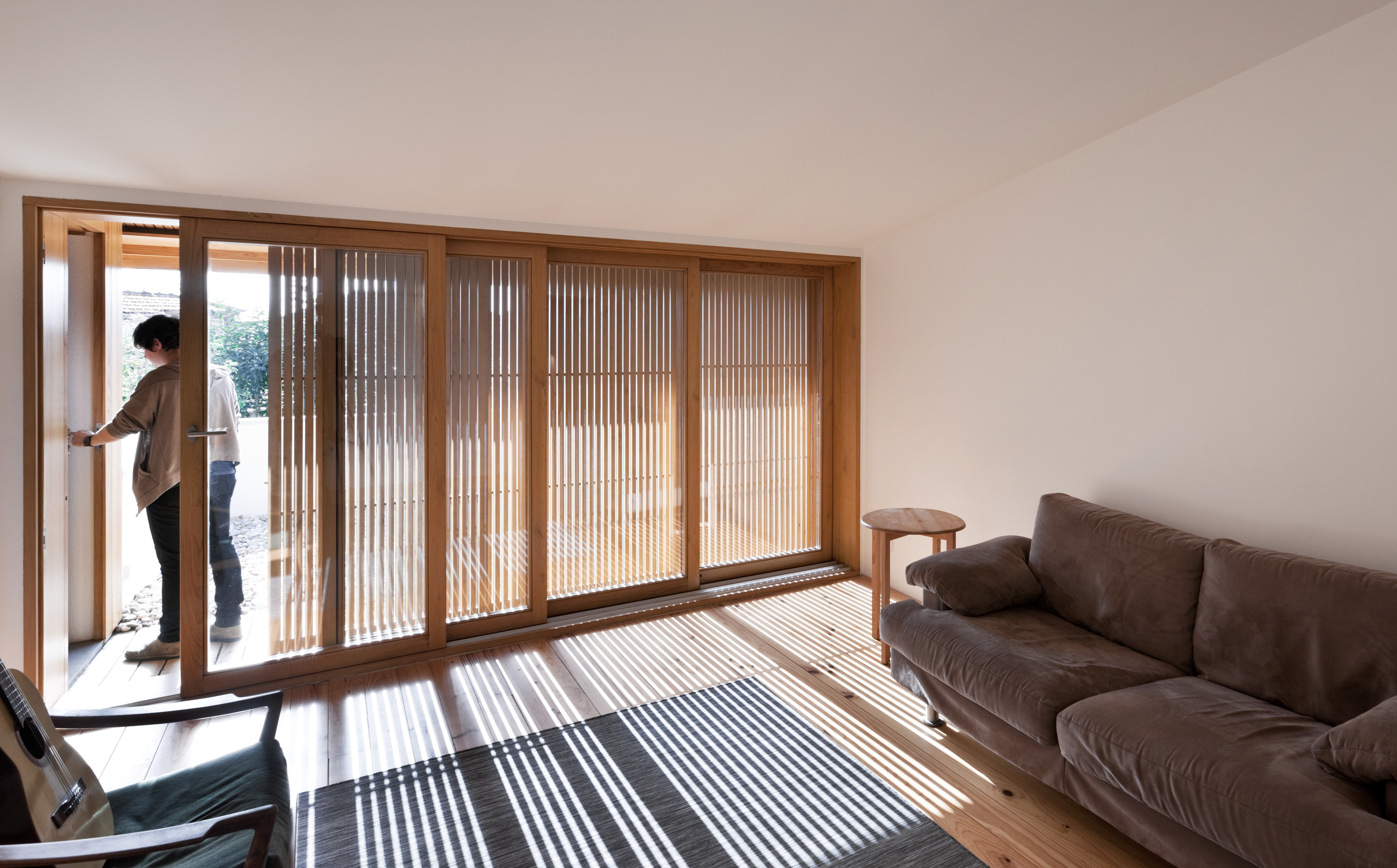 The project transforms the bakery into a two floor house distributing the social spaces on the groundfloor and the private spaces on the upperfloor. There is a mid level between the two floors to open a small pátio that brings light to the client’s musical studio.